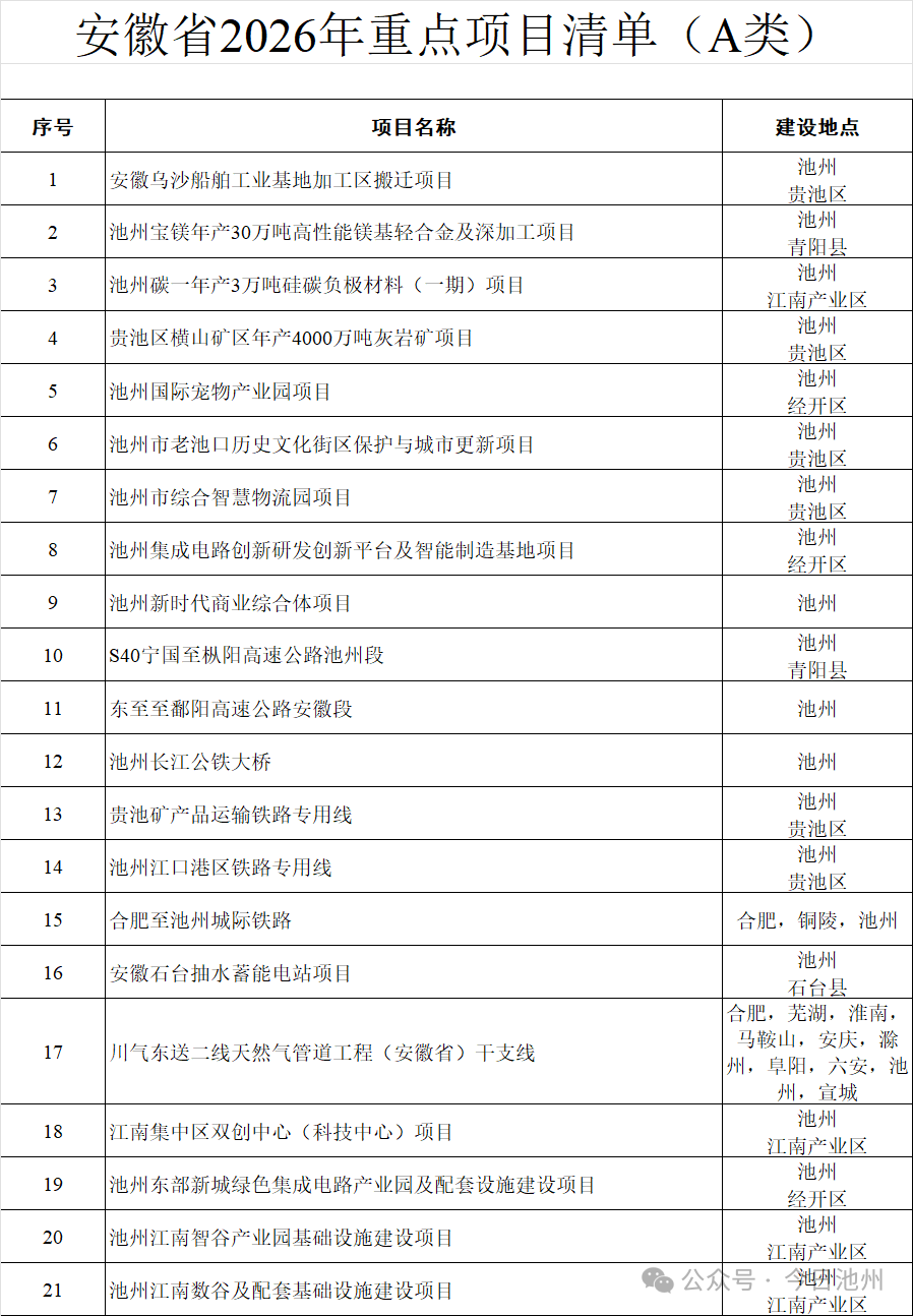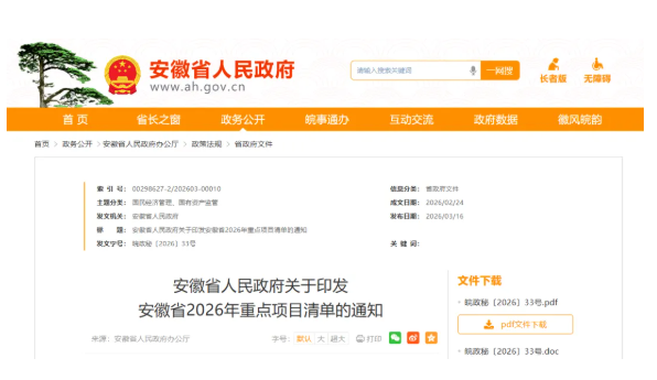安徽省2026年重点项目清单的通知