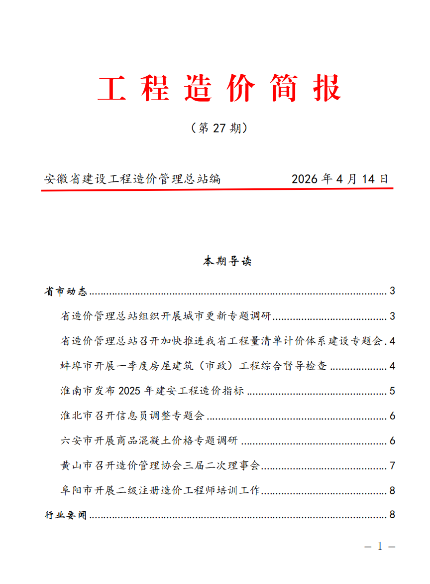安徽省建设工程造价管理总站《工程造价简报》第27期