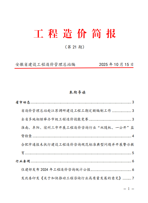安徽省建设工程造价管理总站《工程造价简报》第21期