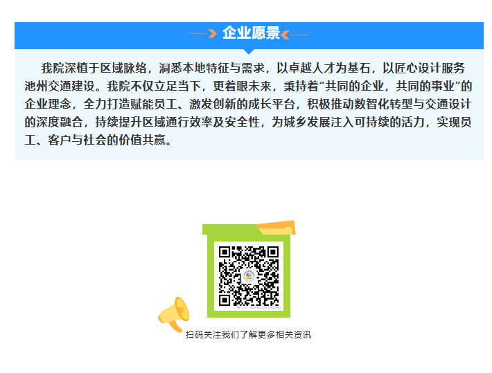 池州市交通规划设计院成立于2010年,公司坐落于安徽省池州市贵池区东湖路229号四层综合楼东侧。是池州市首家公路行业(公路)专业乙级设计单位,主营业务包括公路、水运、市政道路工程设计、咨询,工程勘测、专业类工程测量。自成立以来,我院依托扎实的技术实力与严谨细致的服务态度,在行业内稳步深耕,尤其在公路工程设计、桥梁设计等领域积淀了丰富的实战经验。我院始终秉持匠心精神,以专业的设计方案助力池州交通建设高质量发展。