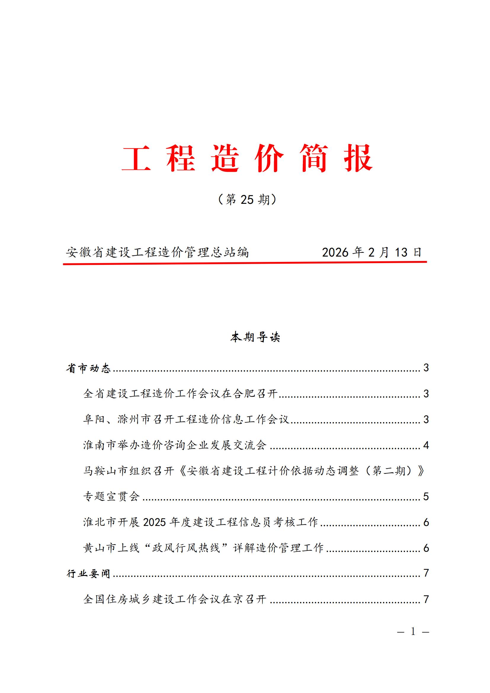 安徽省建设工程造价管理总站《工程造价简报》第25期
