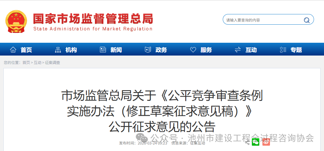 为深入贯彻党的二十大和二十届历次全会精神,认真落实中央经济工作会议部署,市场监管总局对《公平竞争审查条例实施办法》进行修改完善,进一步健全审查机制、规范审查流程、压实审查责任,切实加强公平竞争审查刚性约束,坚决破除地方保护和市场分割问题,促进加快建设全国统一大市场。经过前期调研、专家论证、征求意见,研究形成修正草案征求意见稿及其说明,现向社会公开征求意见。公众可通过以下方式提出反馈意见: