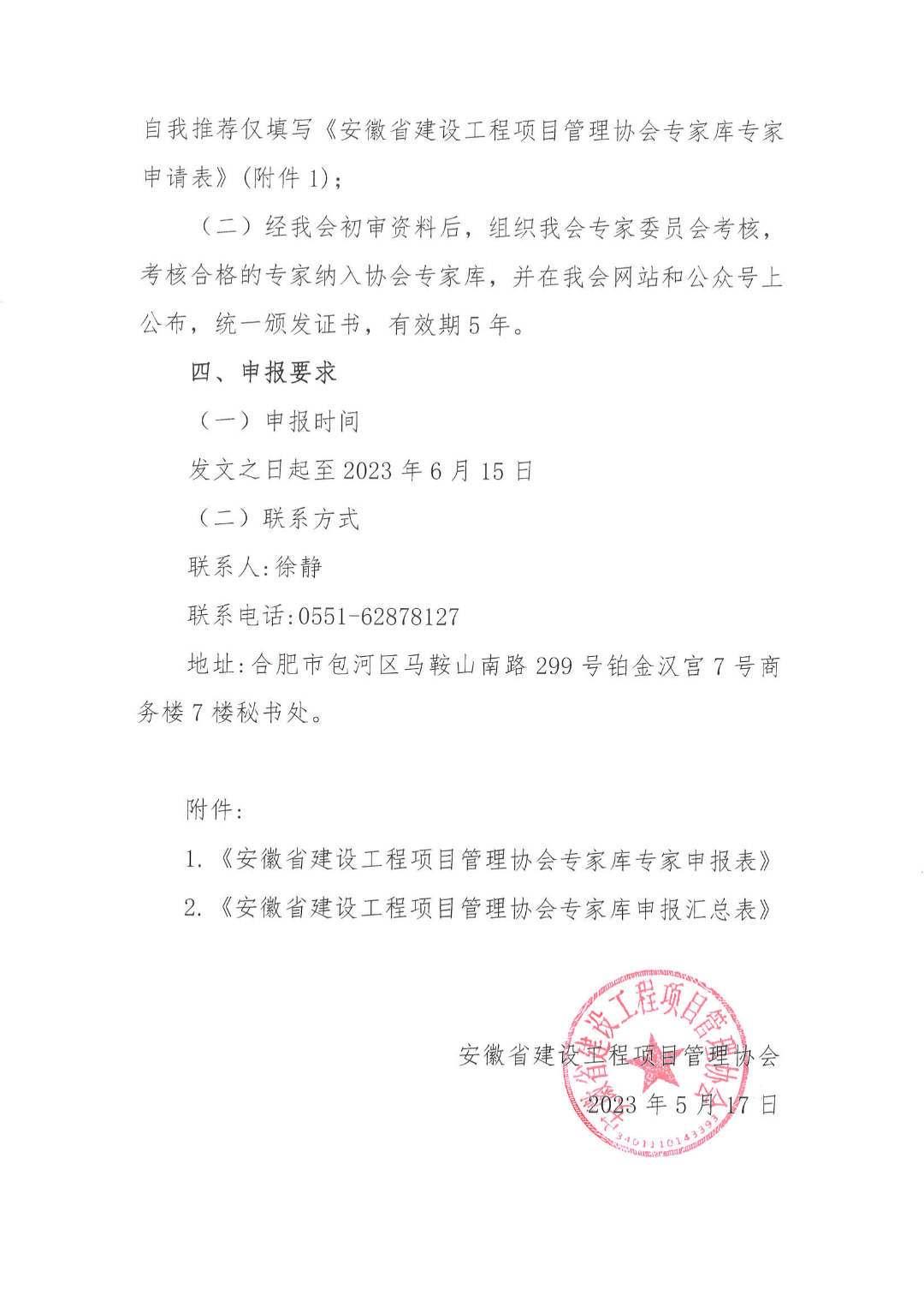 关于完善健全安徽省建设工程项目管理协会专家库建设的通知