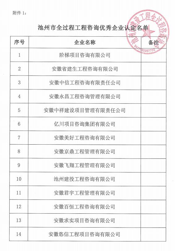 附件:1、池州市全过程工程咨询优秀企业认定名单