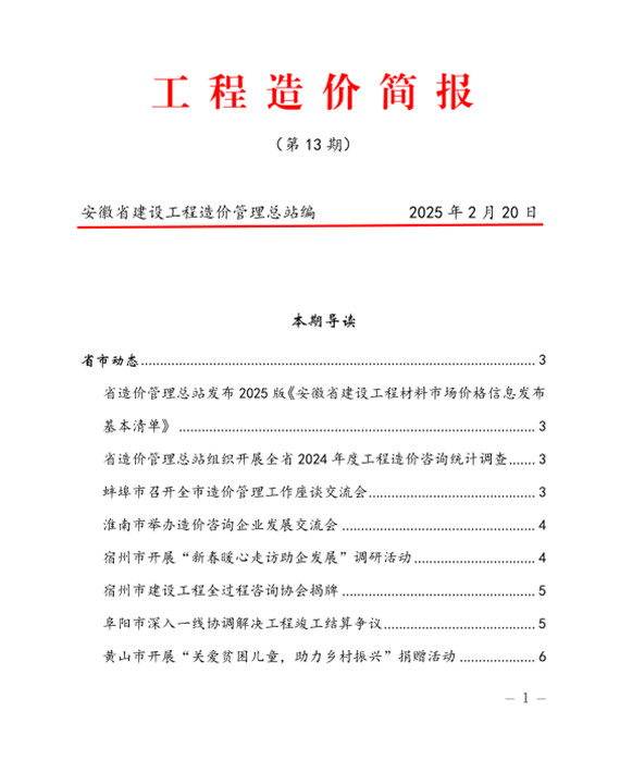 安徽省建设工程造价管理总站《工程造价简报》第13期