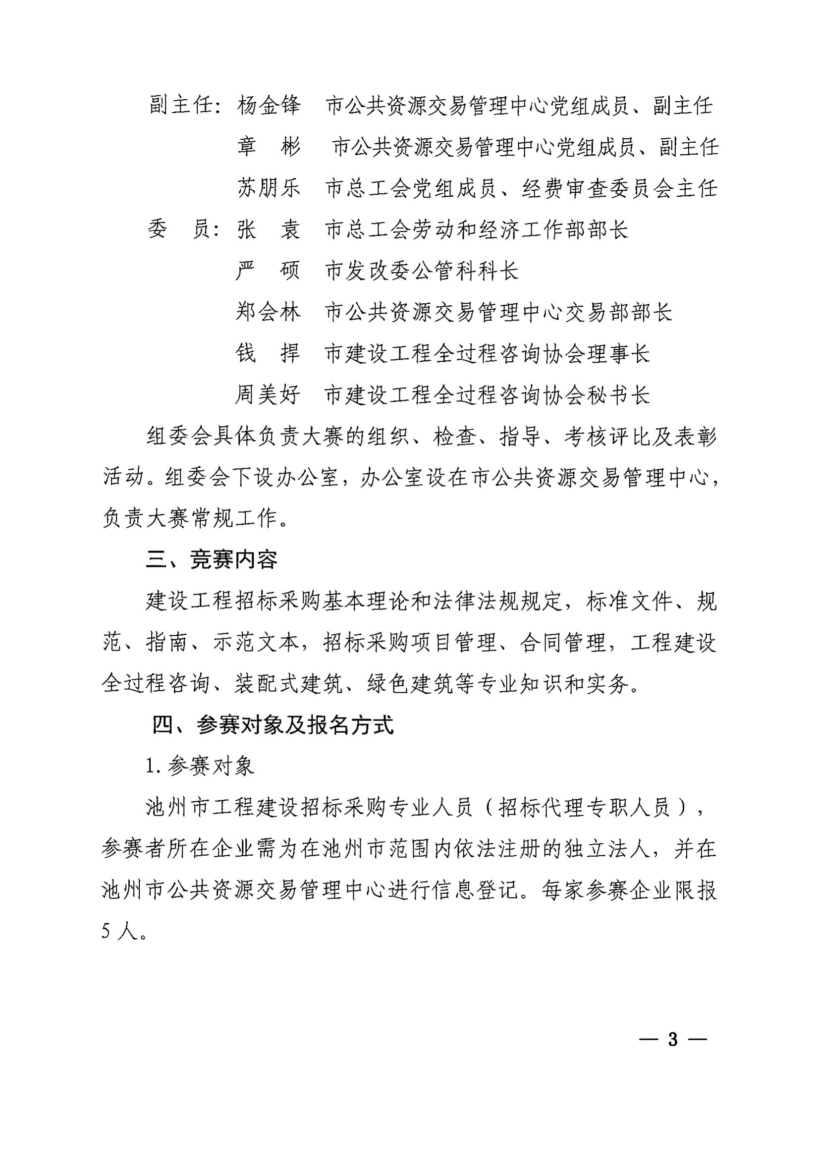 池州市工程建设招标采购专业人员(招标代理专职人员),参赛者所在企业需为在池州市范围内依法注册的独立法人,并在池州市公共资源交易管理中心进行信息登记。每家参赛企业限报5人。