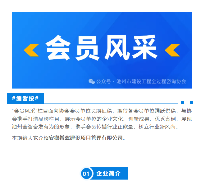 安徽希冀建设项目管理有限公司成立于 2018 年,注册资金 580 万元,是中国建设工程造价管理协会、安徽省建设工程项目管理协会等多家行业协会会员单位。