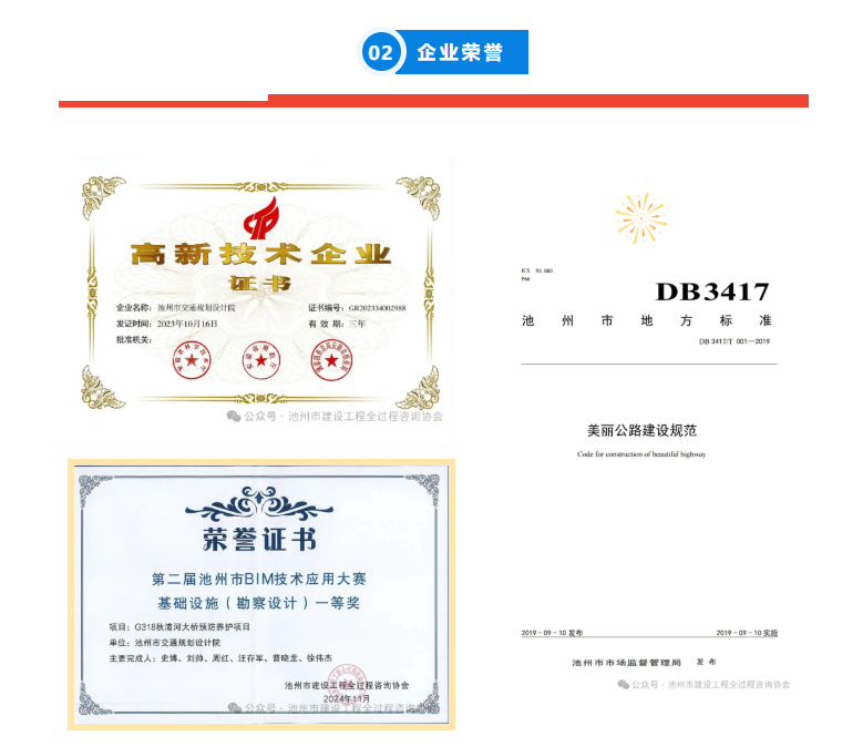 池州市交通规划设计院成立于2010年,公司坐落于安徽省池州市贵池区东湖路229号四层综合楼东侧。是池州市首家公路行业(公路)专业乙级设计单位,主营业务包括公路、水运、市政道路工程设计、咨询,工程勘测、专业类工程测量。自成立以来,我院依托扎实的技术实力与严谨细致的服务态度,在行业内稳步深耕,尤其在公路工程设计、桥梁设计等领域积淀了丰富的实战经验。我院始终秉持匠心精神,以专业的设计方案助力池州交通建设高质量发展。